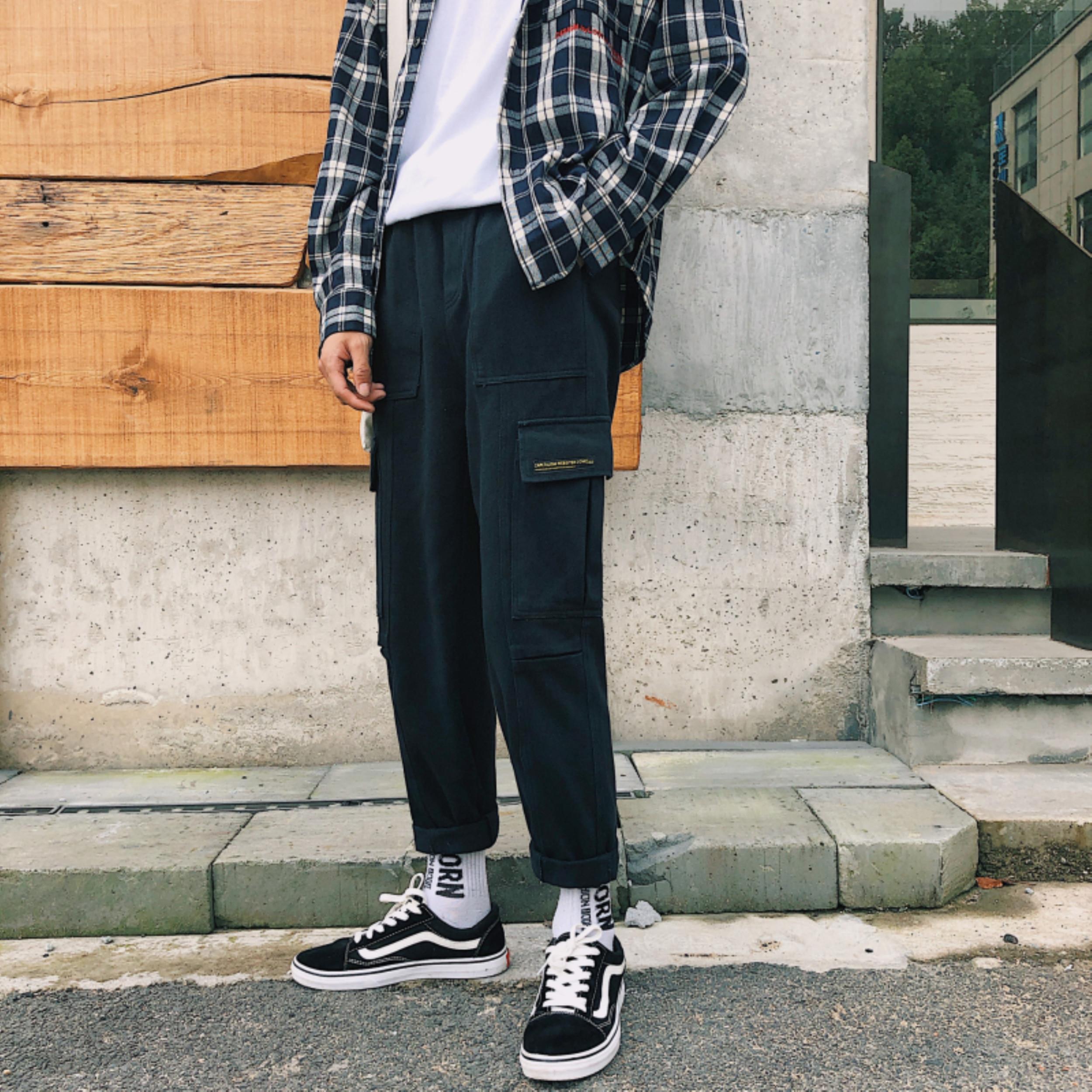 / 文藝男女店日系工裝褲秋冬韓版潮流九分褲男士褲子古著秋季休閑褲