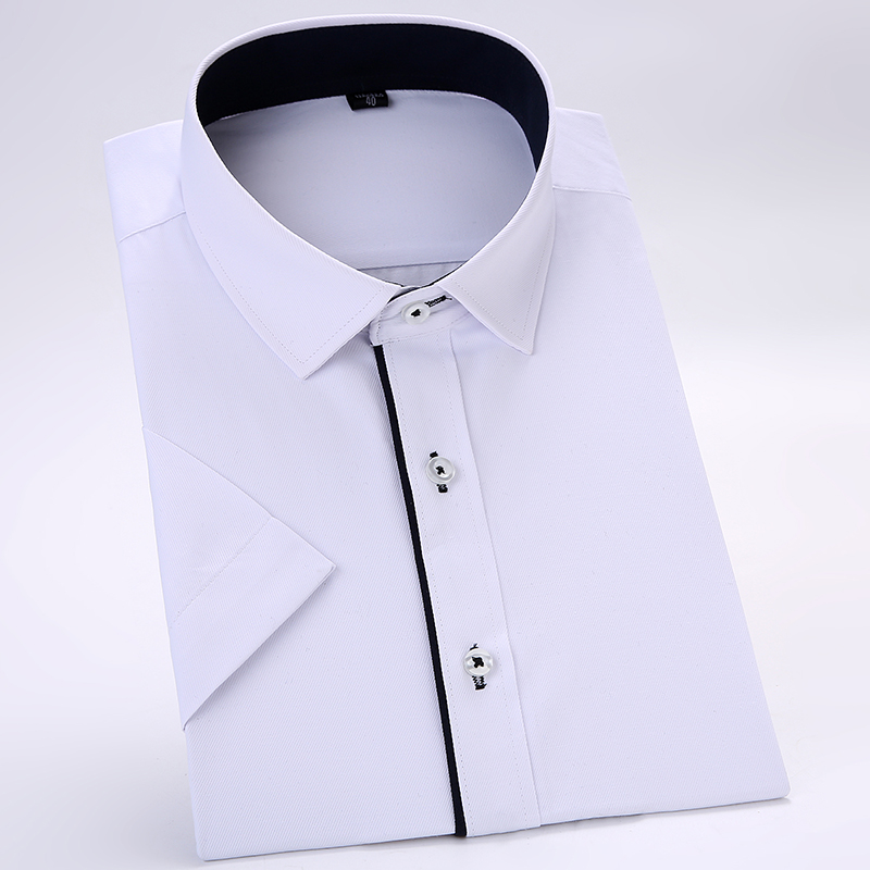 / 夏季白色短袖襯衫男士商務休閑工裝大碼半袖襯衣純色免燙青年寸衫