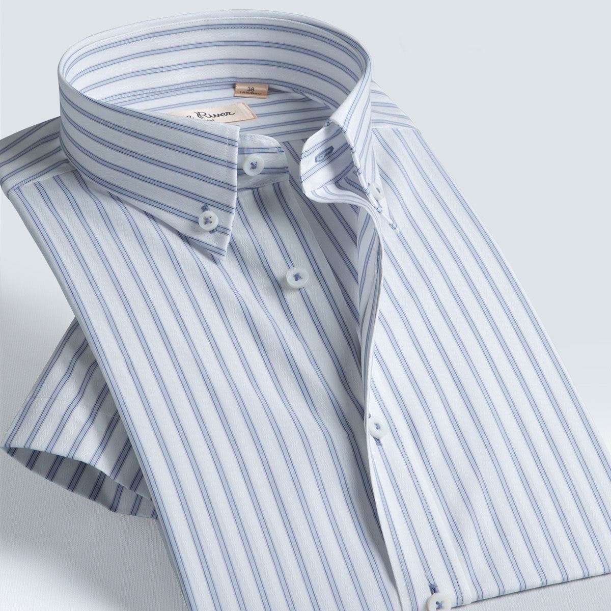 / 夏季新品藍河男裝襯衫男士短袖襯衣純棉條紋商務休閑專柜正品