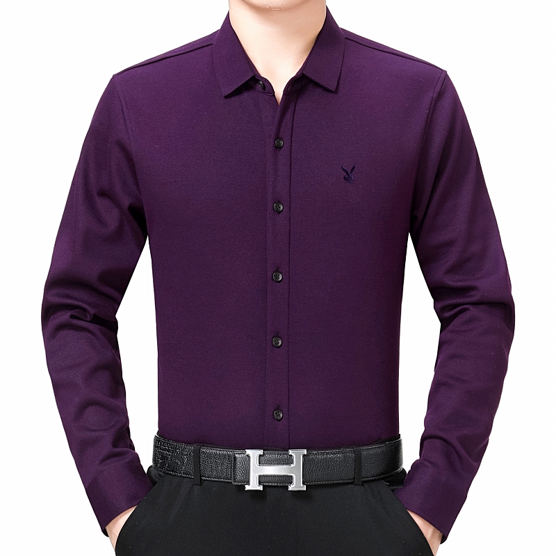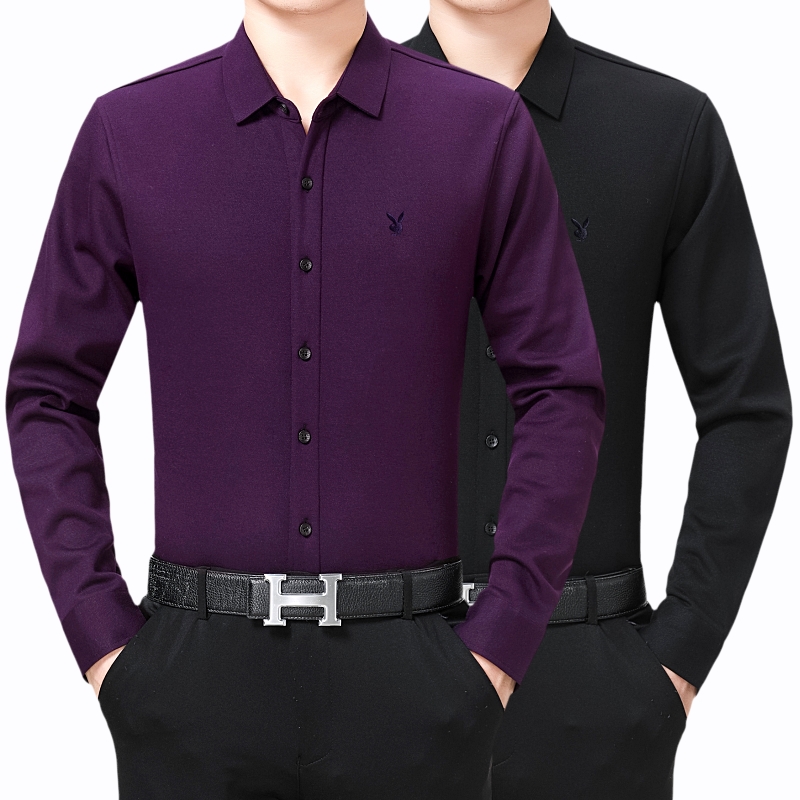 / 花花公子正品中年男士長袖羊絨保暖襯衫商務男裝加絨加厚襯衣冬款