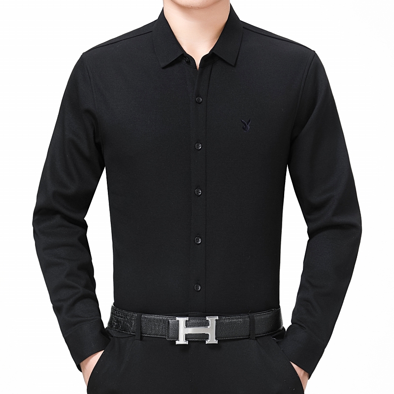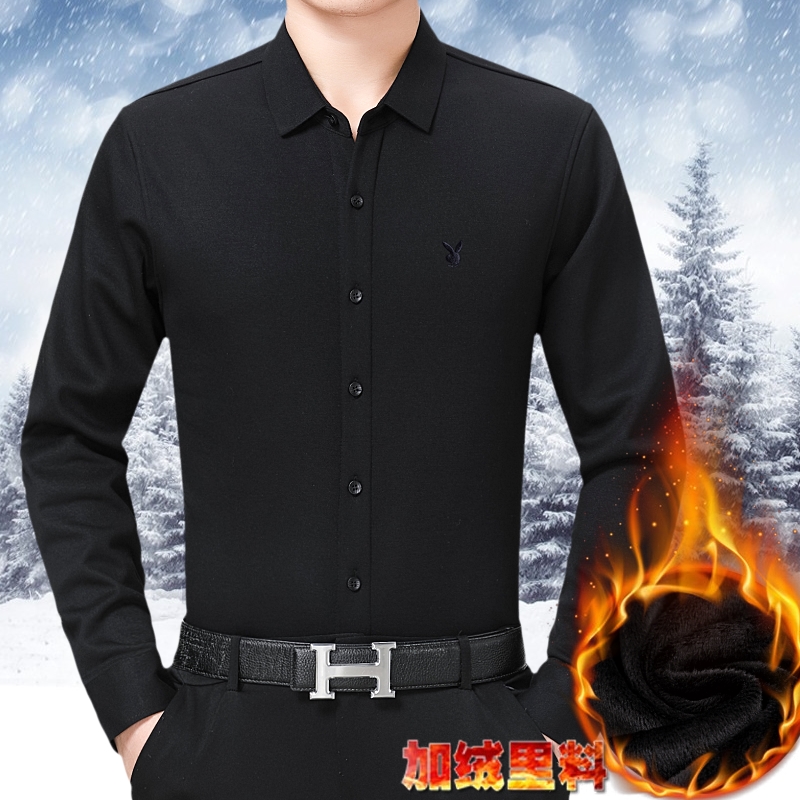 花花公子正品中年男士長袖羊絨保暖襯衫商務男裝加絨加厚襯衣冬款