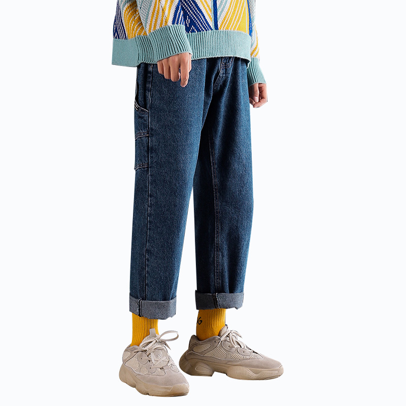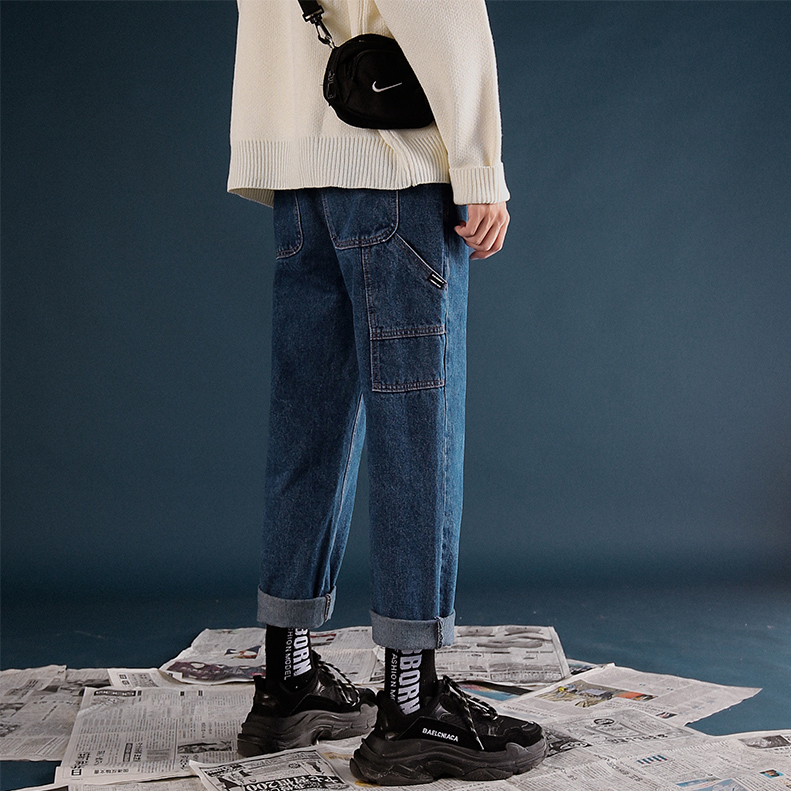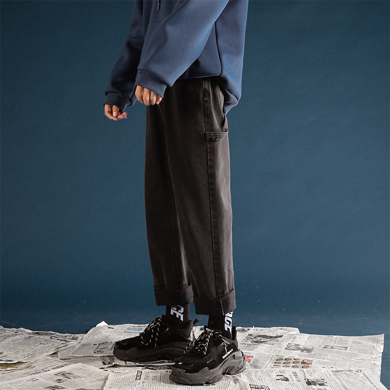 / 文藝男女店韓風chic牛仔褲男士寬松直筒褲子秋季韓版潮流男裝長褲
