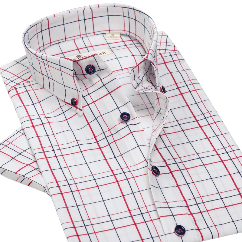 / 夏季格子襯衫男短袖純棉免燙襯衣男士寸休閑青年韓版薄款寬松潮流
