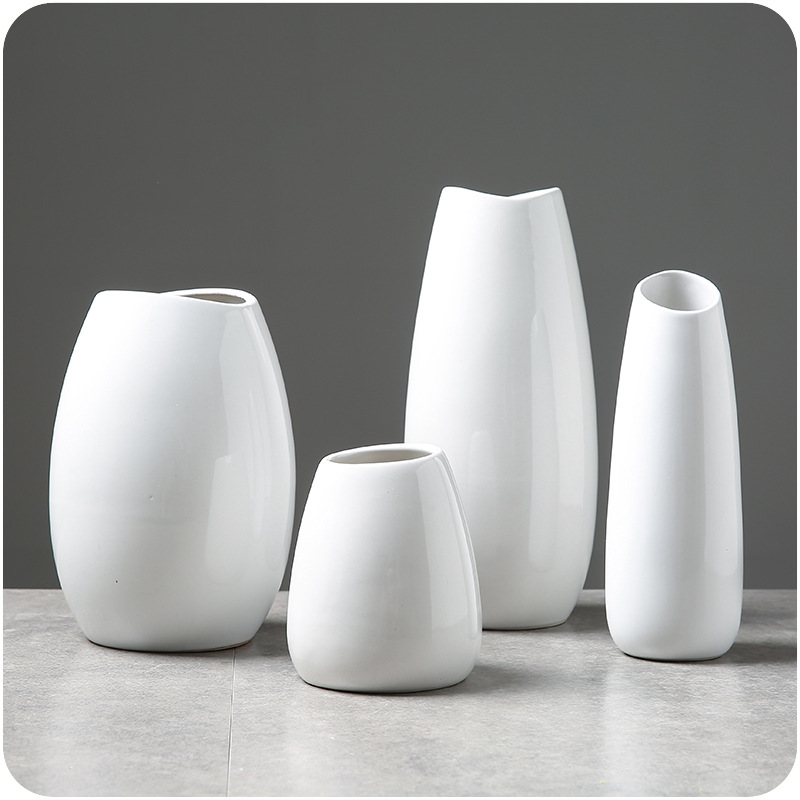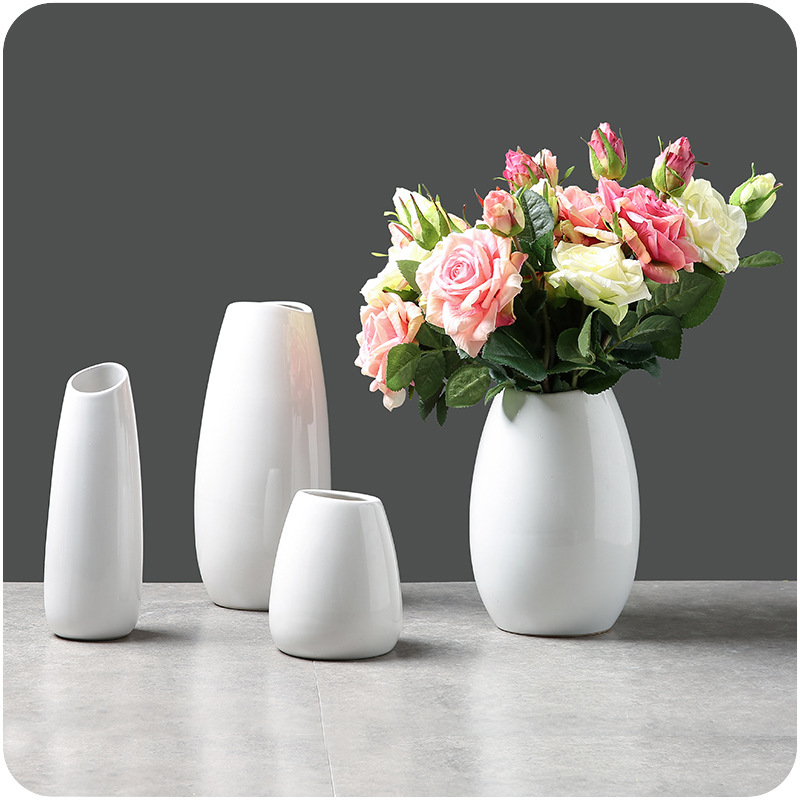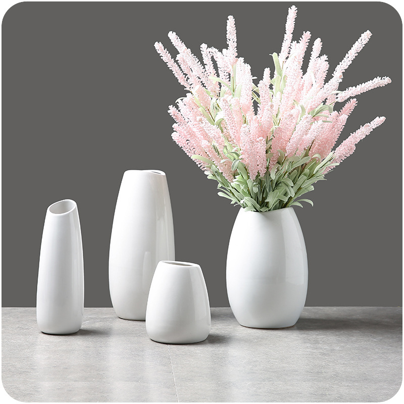 / 簡約現代桌面陶瓷純白色插花瓶家裝仿真花藝飾品擺件可裝水培花瓶