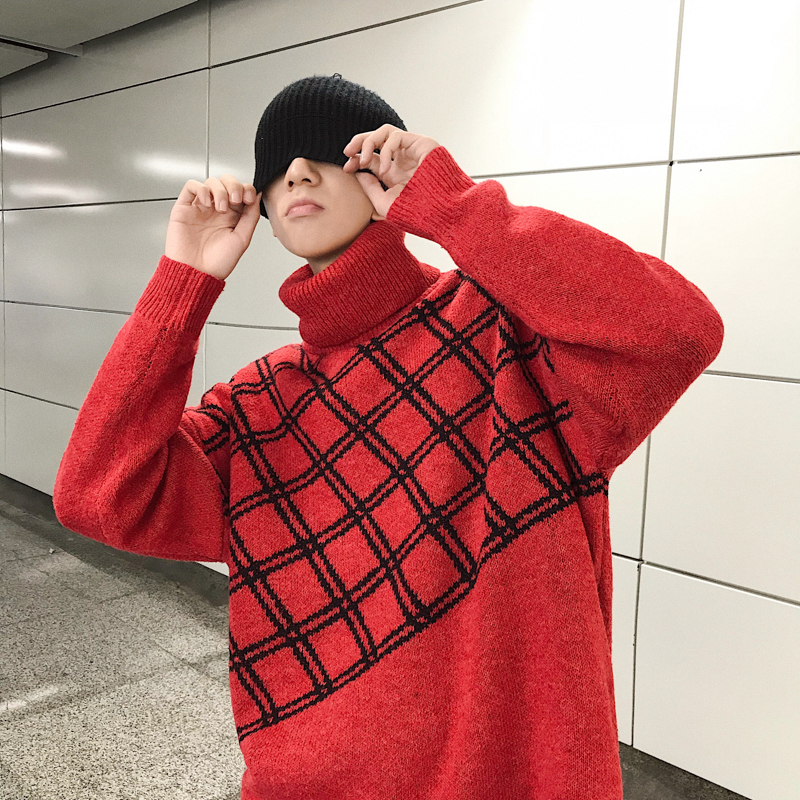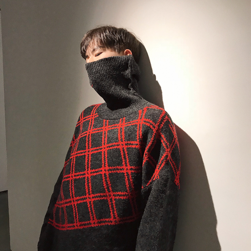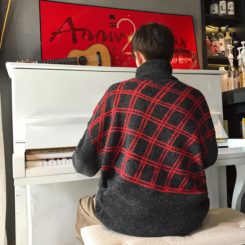 / 文藝男女店高領冬季毛衣男士格子秋季針織衫韓版線衣潮流外套冬裝