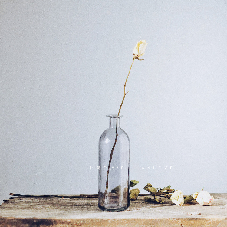 樸簡 北歐復古簡約透明玻璃花器 插花瓶chic風 家居軟裝擺件
