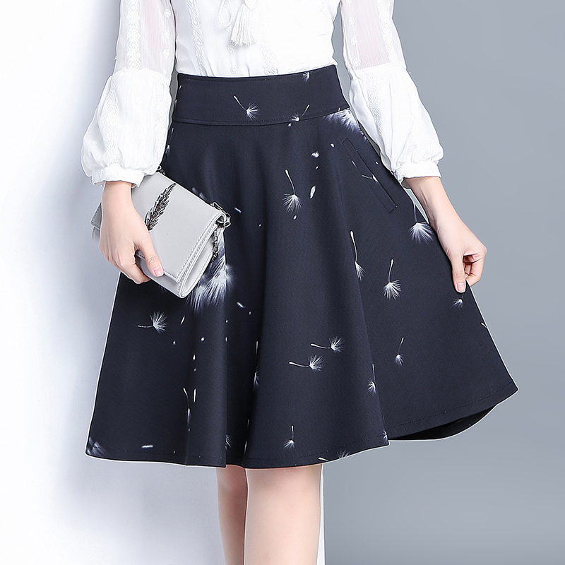/ 春夏季新款印花半身裙女a字裙高腰中長款長裙傘裙百褶裙