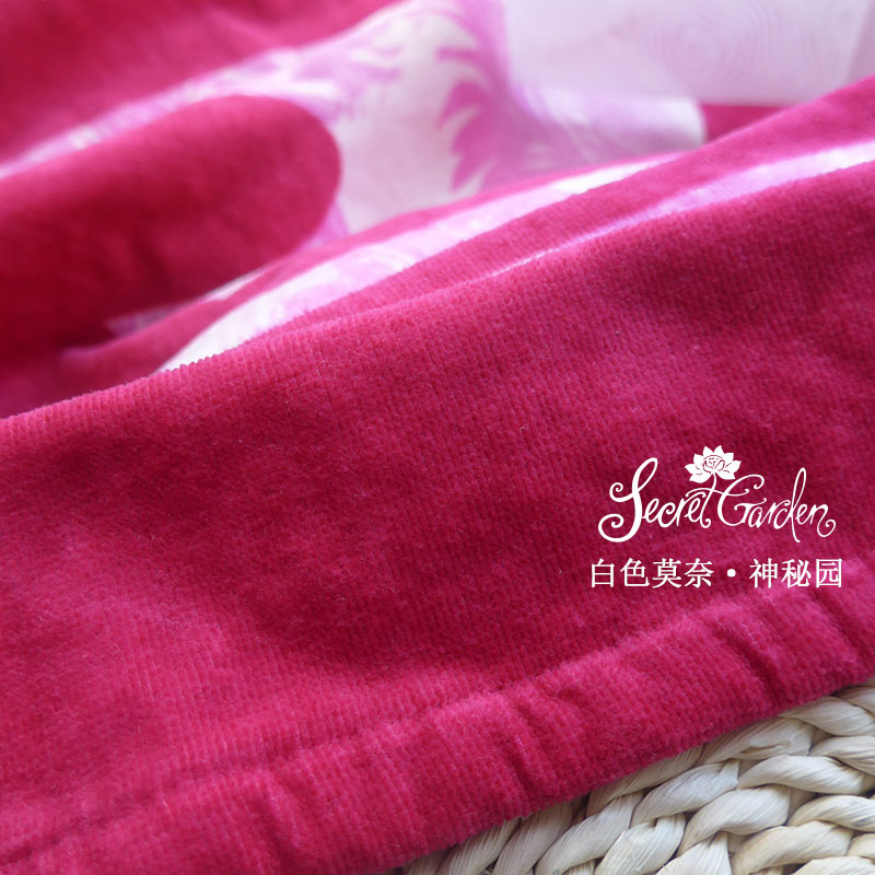 將普通毛巾的毛圈進行剪割處理,使織物表面布滿平整的絨毛,割絨毛巾可以雙面都割絨,也可以單面割絨、另一面仍為毛圈。也可以局部割絨形成紋樣絨圈共存,相互印襯.割絨毛巾的特點是柔軟,使用舒適,比普通毛巾有更強的吸濕性和柔軟度。割絨后再印花,更能增加毛巾的裝飾美,從而提高產品檔次