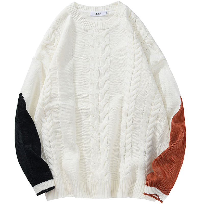 拼色男士寬松毛衣圓領潮流韓版針織衫秋季新款休閑男裝情侶裝上衣