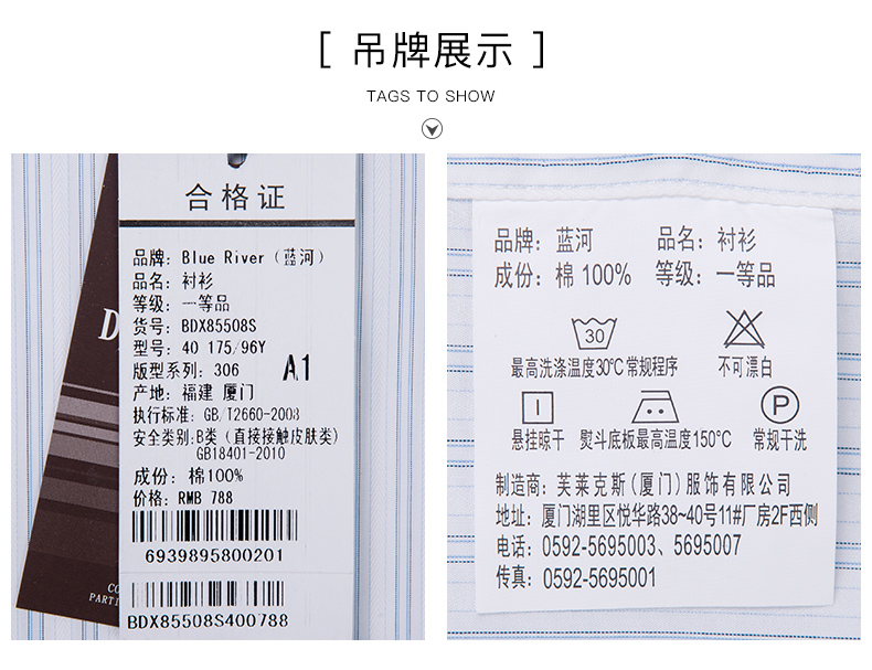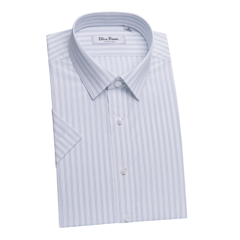 / BLUE RIVER/藍河條紋短袖襯衫男士正裝商務半袖襯衣純棉修身寸衫