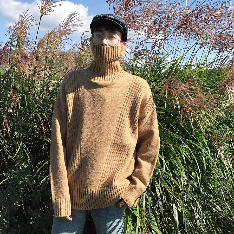 / 文藝男女店冬季高領加厚毛衣韓版潮流套頭針織衫慵懶風寬松外套男