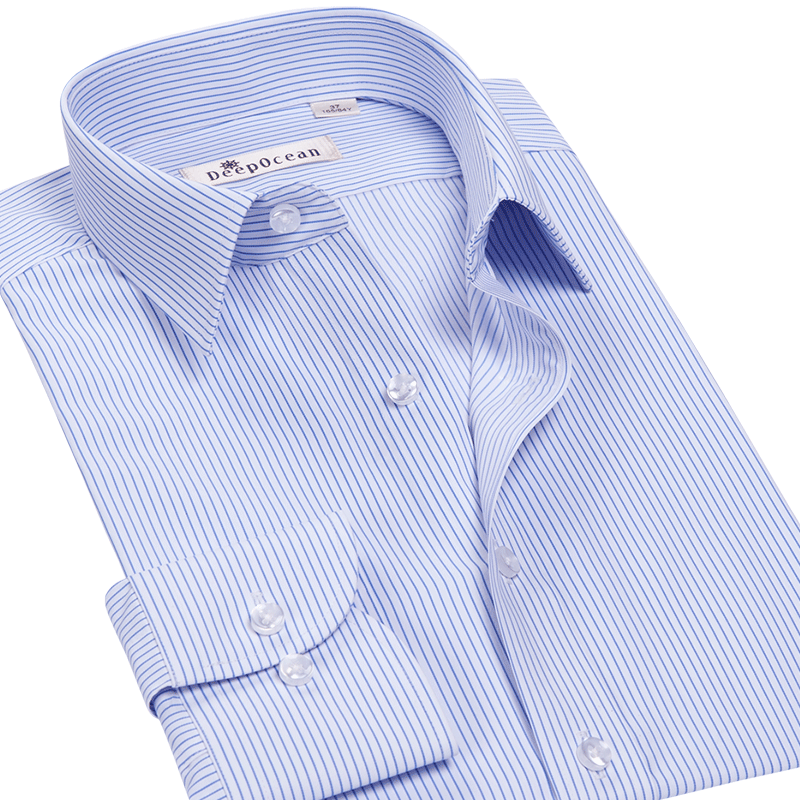 / 薄款冰絲免燙抗皺襯衫男藍白條紋襯衣長袖男士寸商務休閑韓版修身