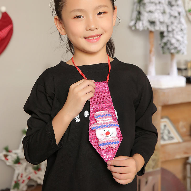 / 圣誕裝飾用品發光亮片卡通領帶 兒童圣誕節禮物圣誕彩色小領帶