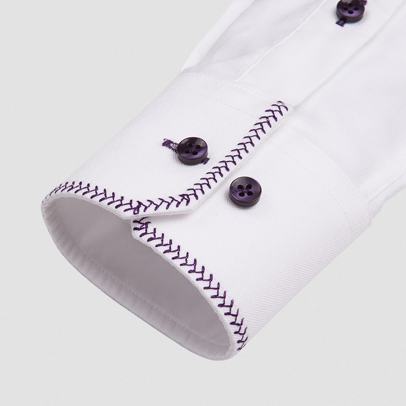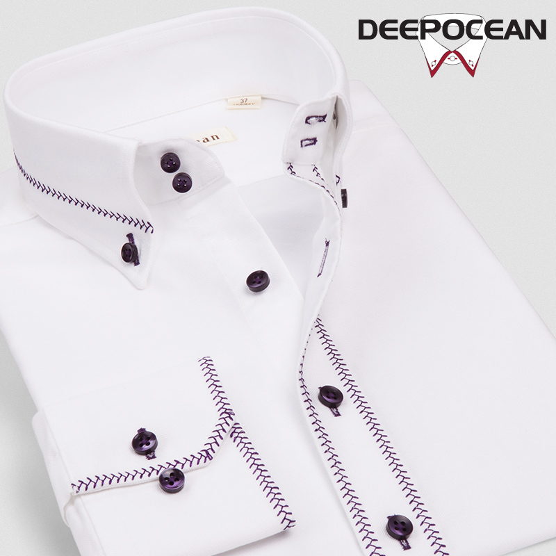 / 鑲邊刺繡白襯衫男長袖襯衣男士純棉修身免燙韓版商務休閑潮流帥氣