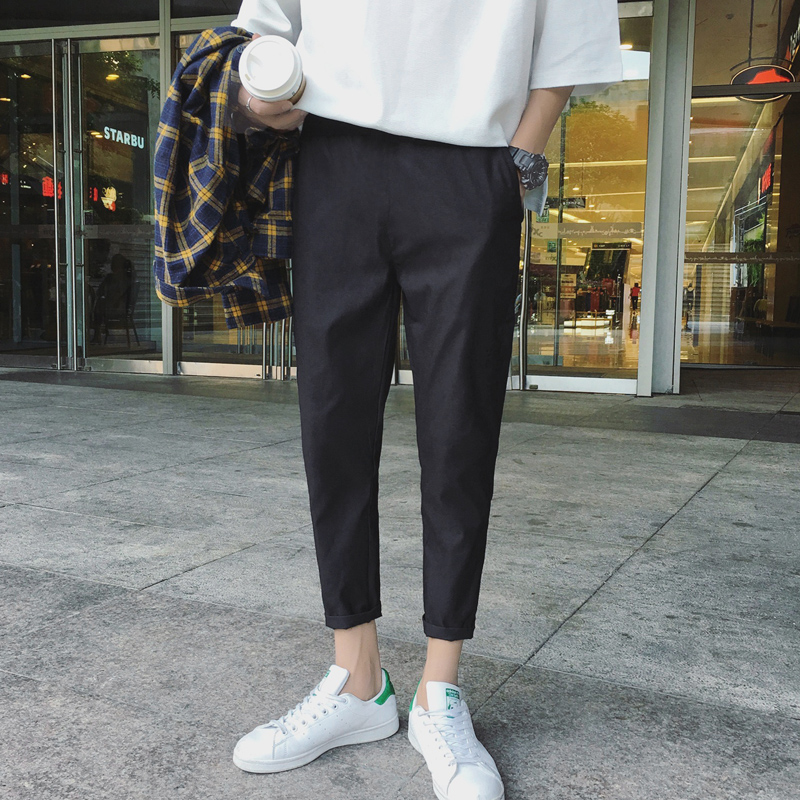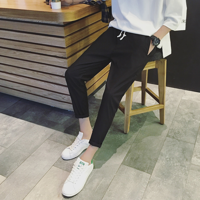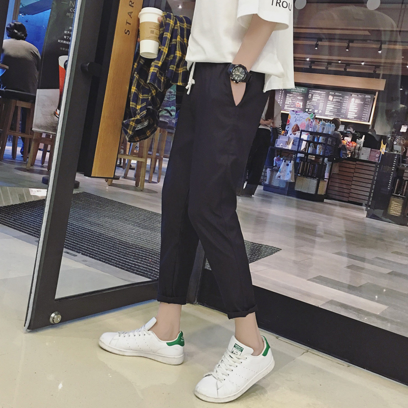 / 男士九分褲新款休閑褲韓版修身運動褲小腳青少年潮流褲子黑色男褲