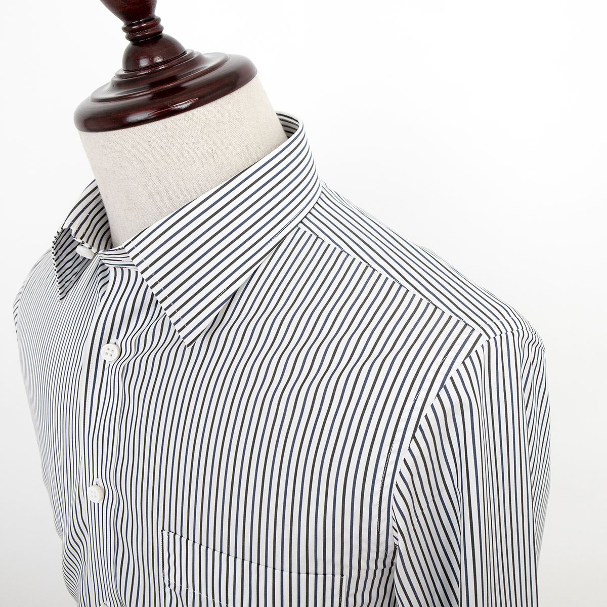 / 藍河商務男裝藍黑色條紋長袖襯衫純棉男士修身型上班襯衣