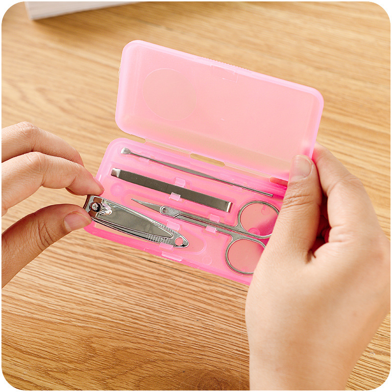 / 便攜式指甲剪4件套裝多功能不銹鋼指甲刀修甲套糖果色指甲剪盒裝