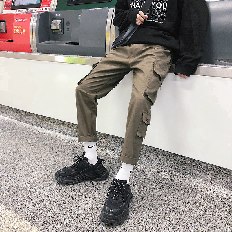 / 文藝男女店直筒工裝褲男士秋季潮流休閑褲新款哈倫男褲韓版九分褲