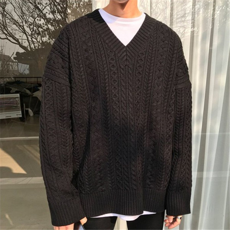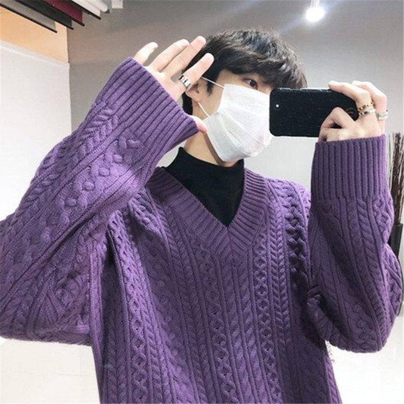 文藝男女店冬季V領毛衣男士韓版潮流加厚針織衫個性外套套頭線衣