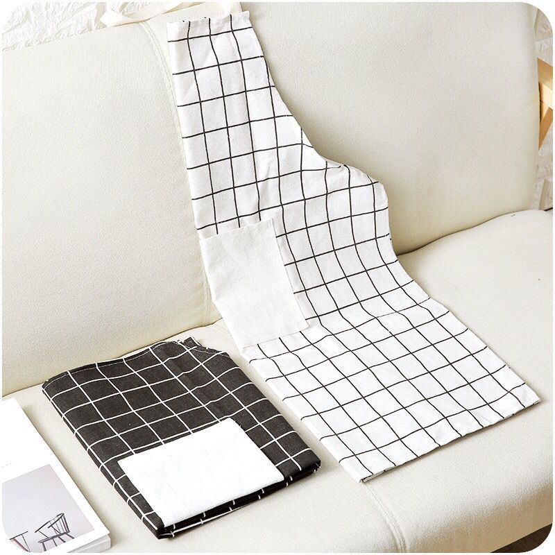 / 廚房家居純棉麻圍裙現代簡約布藝無袖印花防油污掛脖系帶格子圍裙