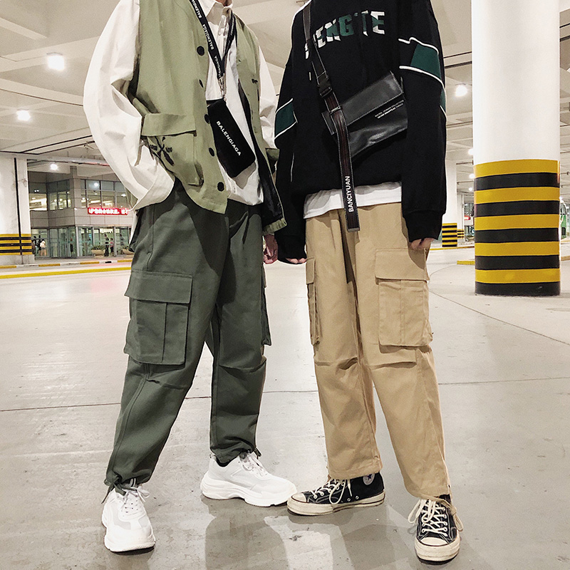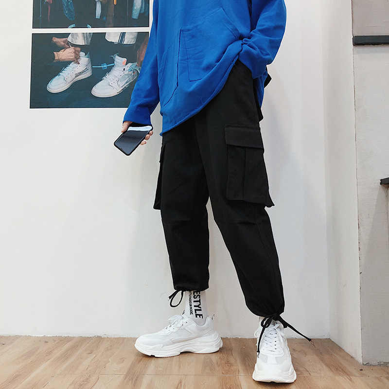/ 男士休閑褲秋季港風工裝褲潮流男裝褲子韓版寬松九分褲青少年男褲