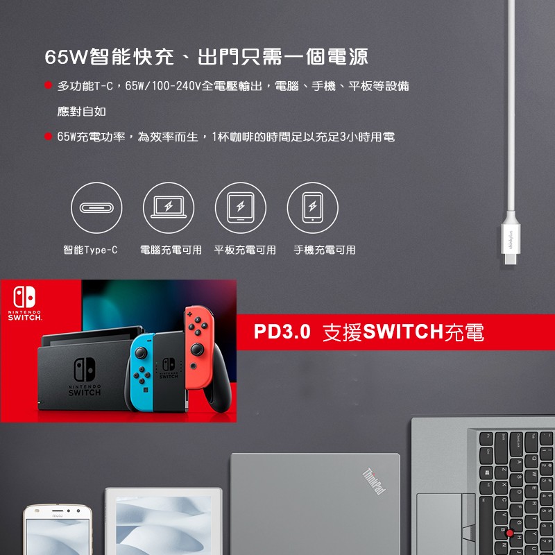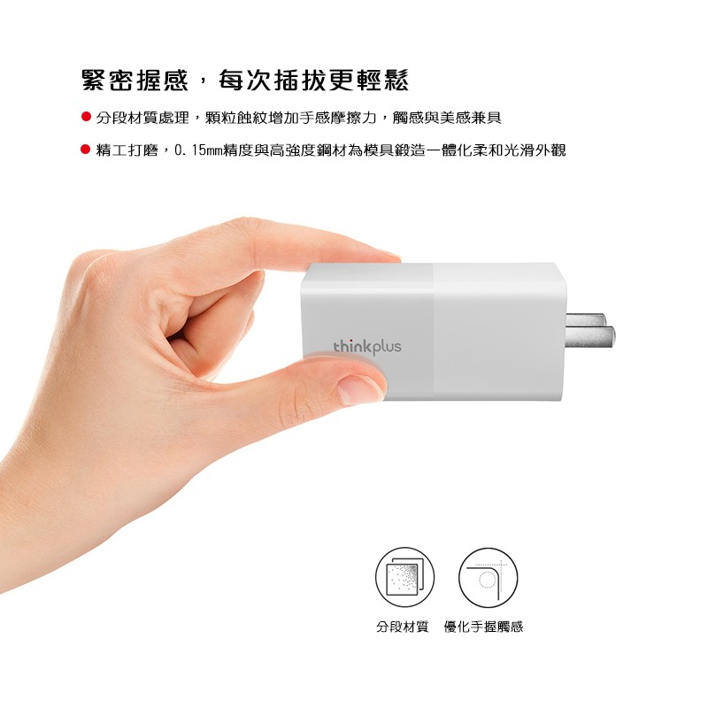 聯想thinkplus 65W PD+QC3.0 Type-C電源供應器_2019 Macbook、SWITCH充電器、口紅電源