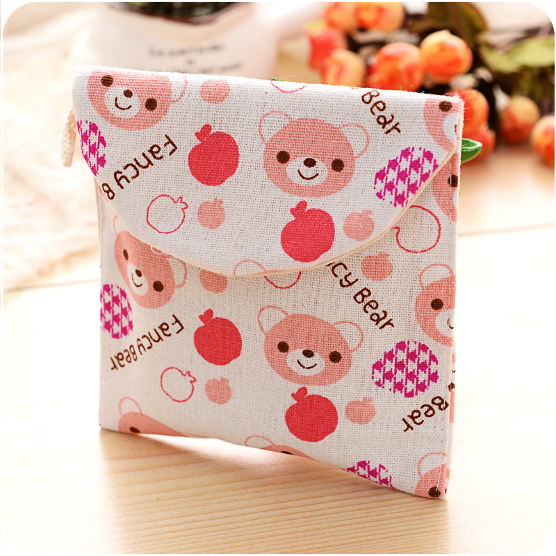 可愛小清新多圖案衛生棉包 女生姨媽巾收納包 裝衛生巾的棉布包