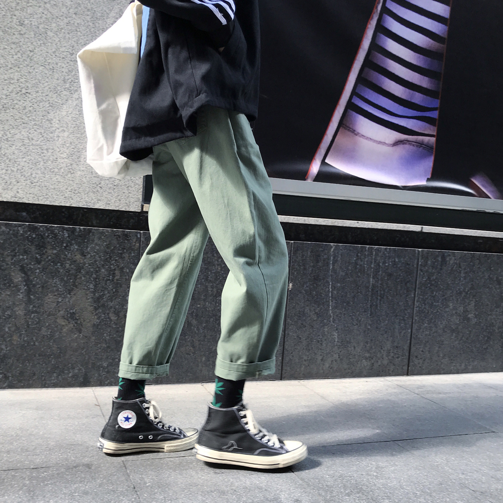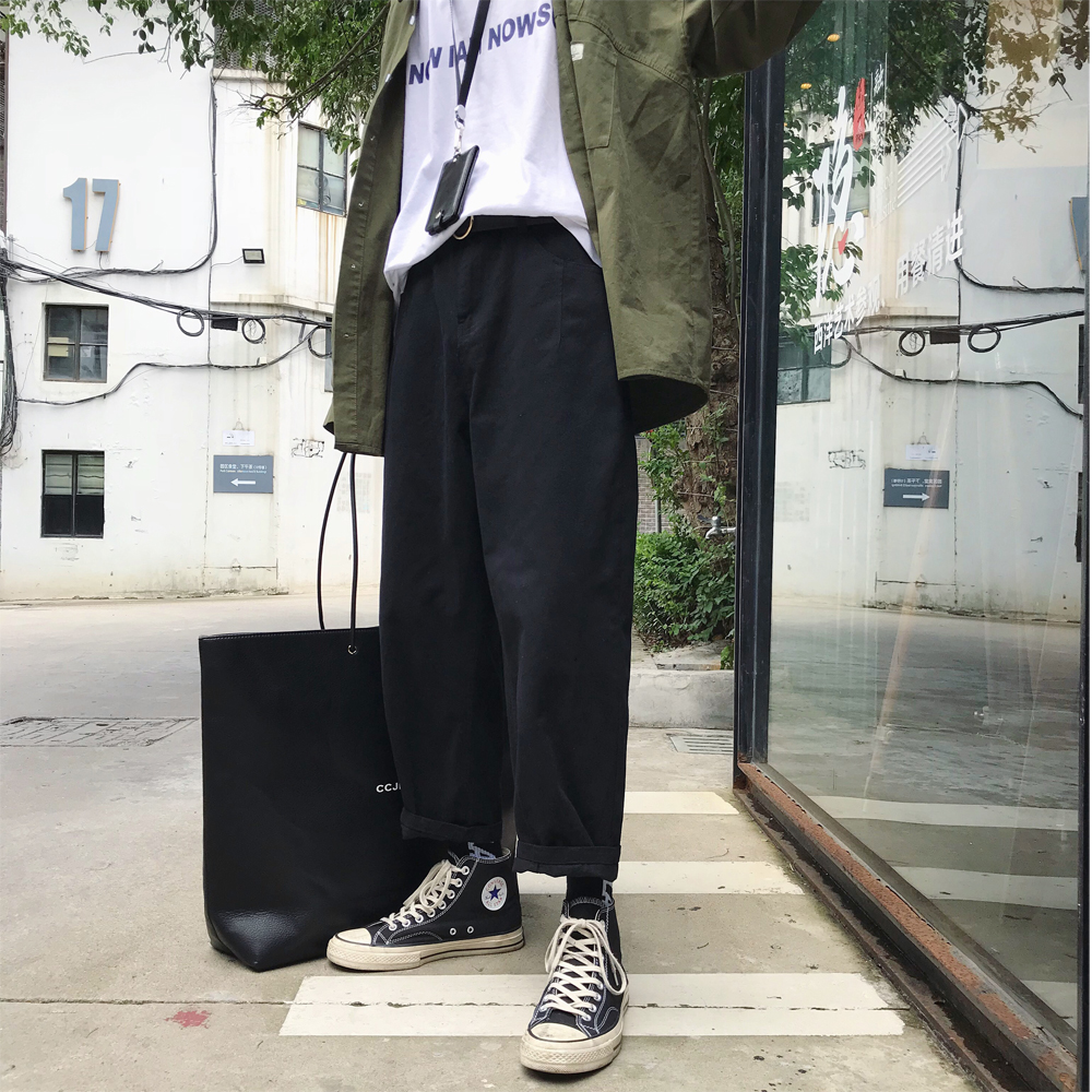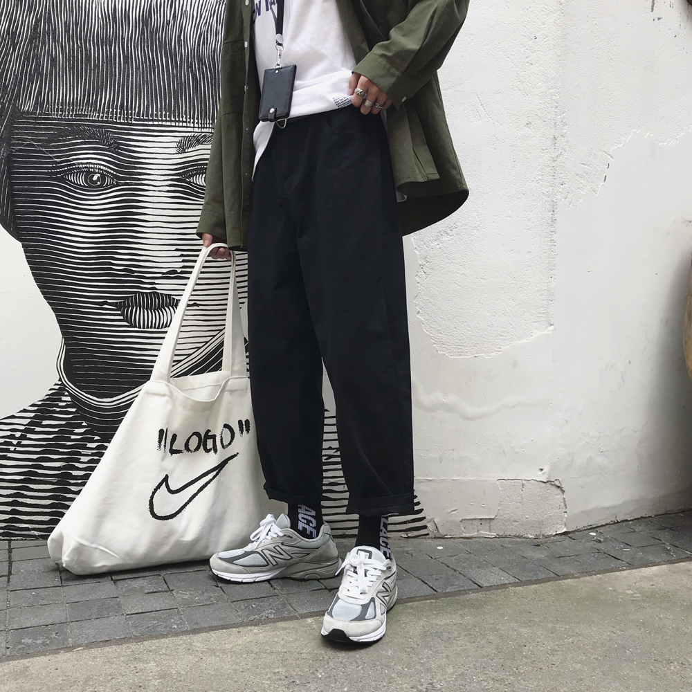/ 男士工裝褲寬松港風休閑褲秋季潮牌九分褲薄款新款潮流褲子男韓版