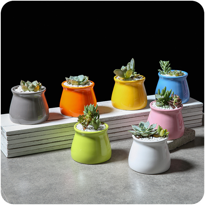 糖果色多肉陶瓷多肉植物室內花盆創意彩色簡約圓形大肚肉精致花盆