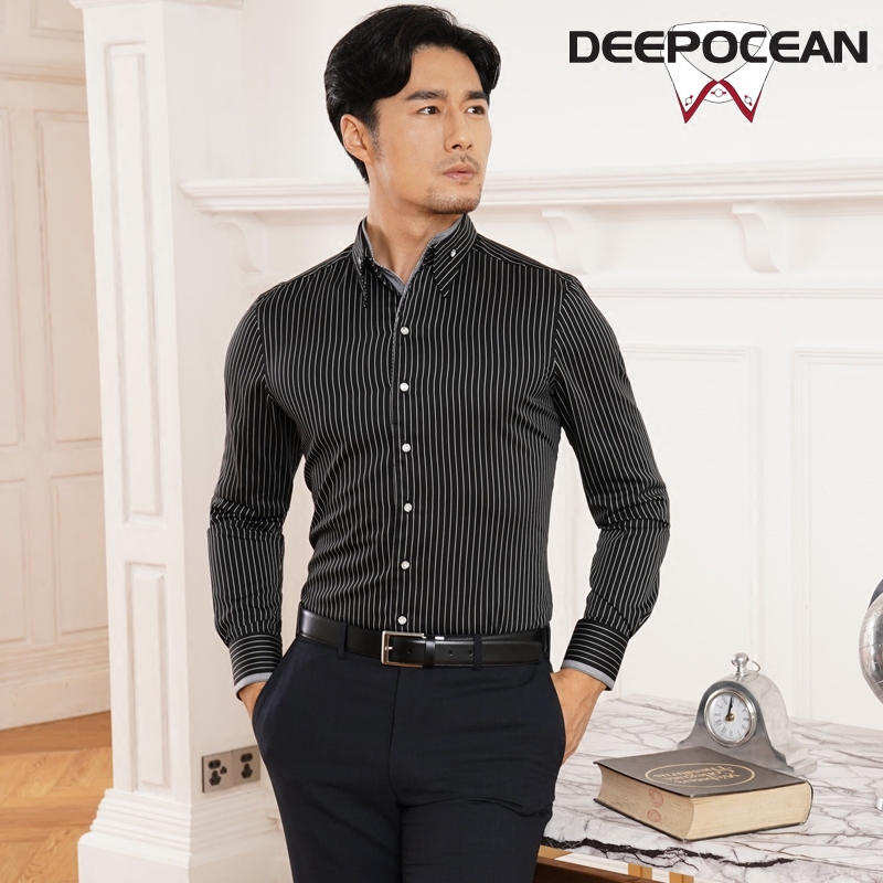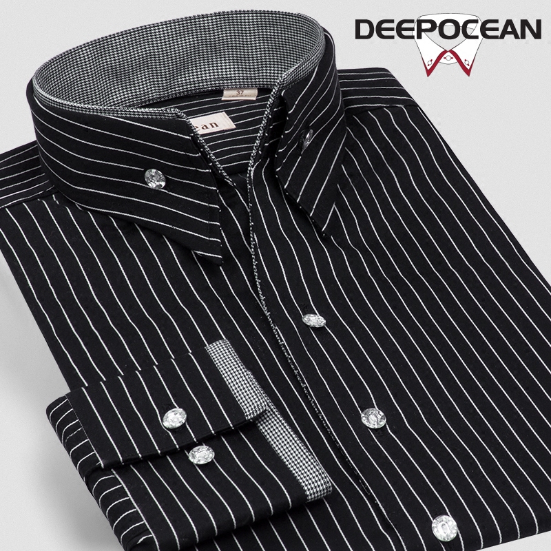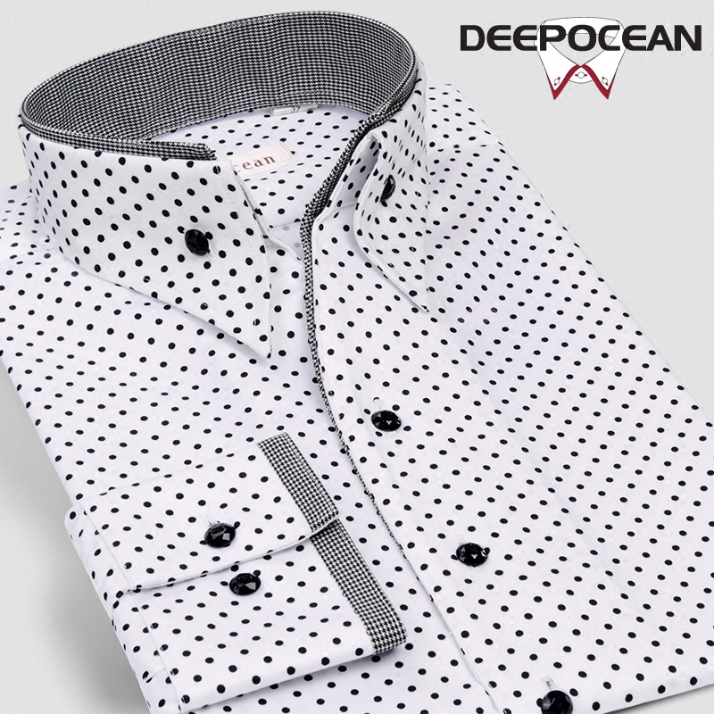 / 潮流圓點印花V領印花襯衫男長袖男士襯衣絲光棉韓版休閑修身秋季