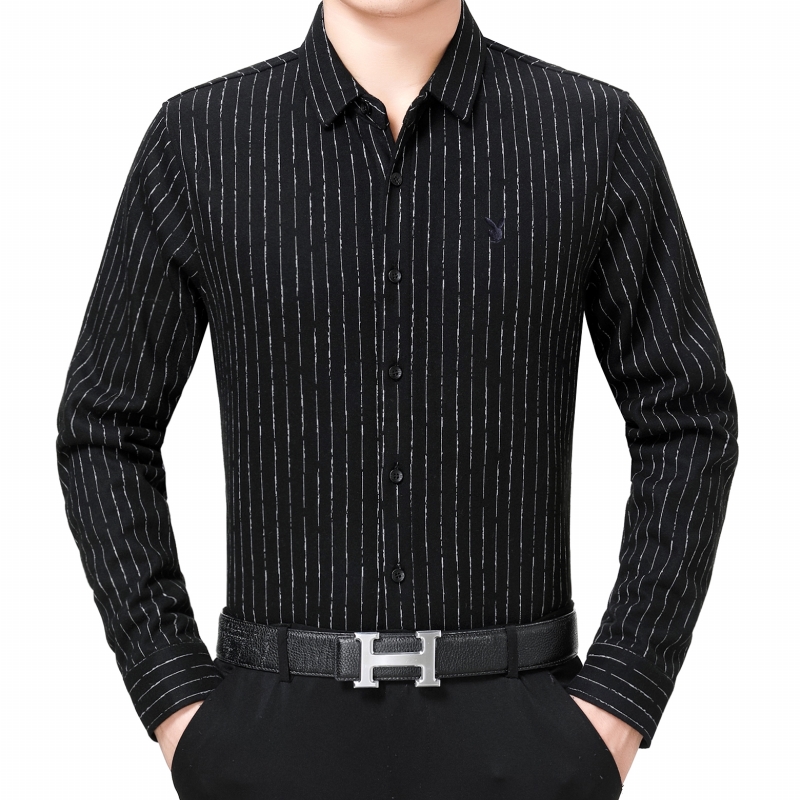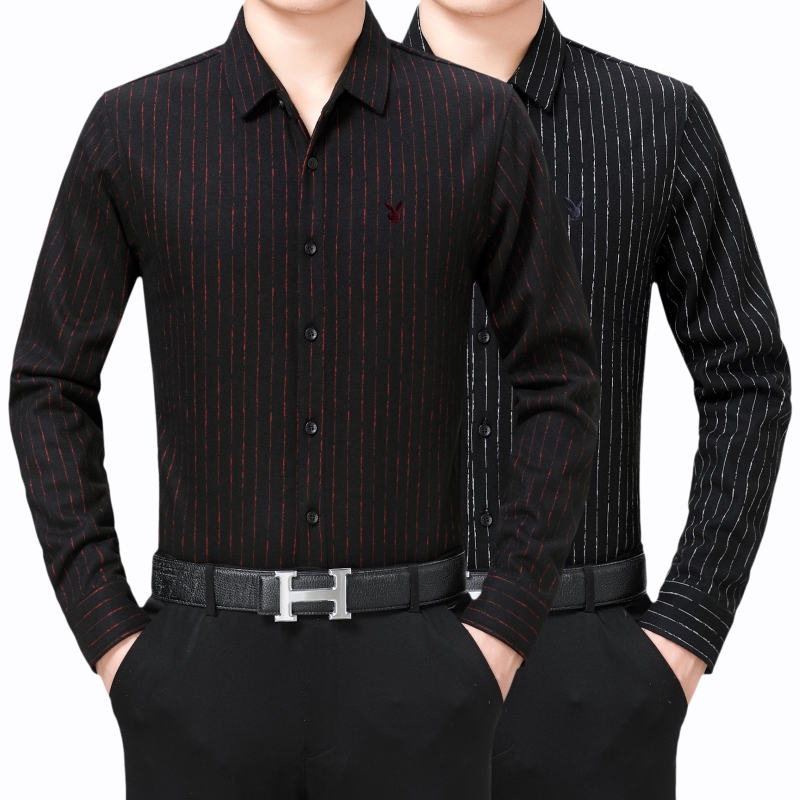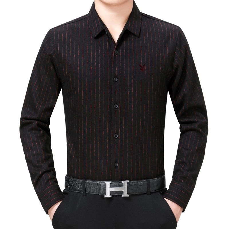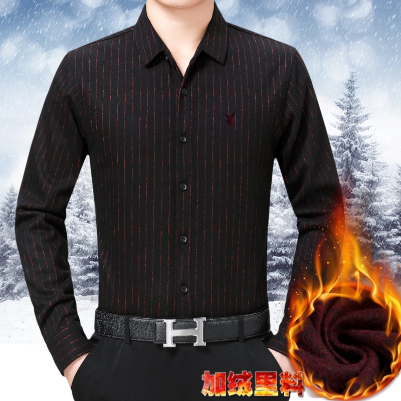 花花公子正品中年男士長袖保暖襯衫商務男裝加絨加厚條紋襯衣冬季