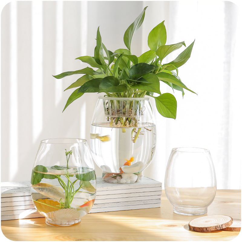 高透明玻璃綠蘿花瓶恐龍蛋橢圓形水培花瓶瓶子富貴竹水養植物容器
