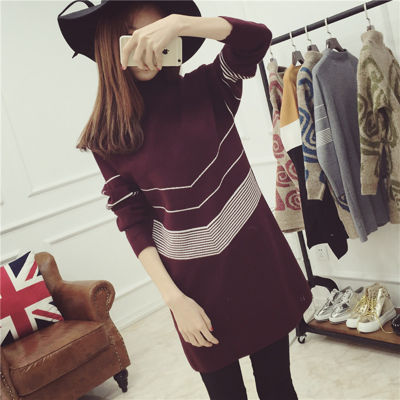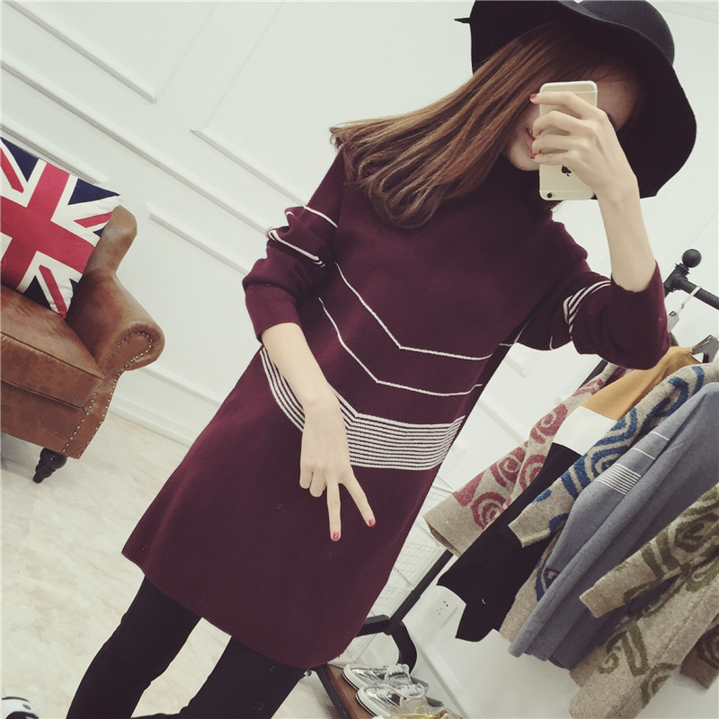 / 秋冬毛衣裙女套頭中長款高領打底衫針織連衣裙女裝秋裝新款潮
