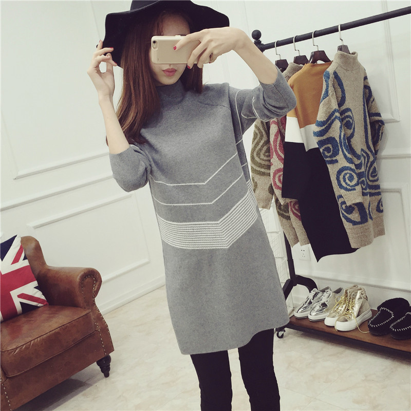 秋冬毛衣裙女套頭中長款高領打底衫針織連衣裙女裝秋裝新款潮