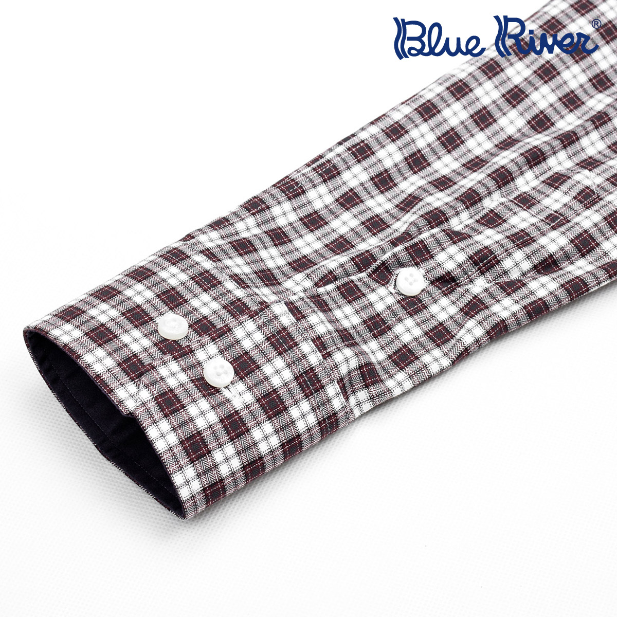 / 藍河棕色格子男士長袖襯衫純棉免燙商務休閑修身襯衣秋季新款男裝