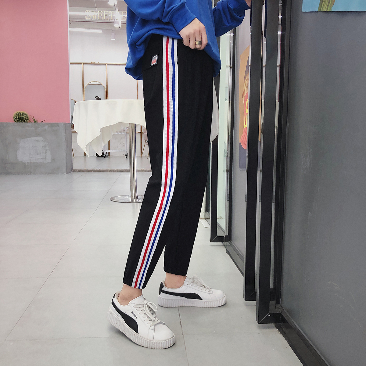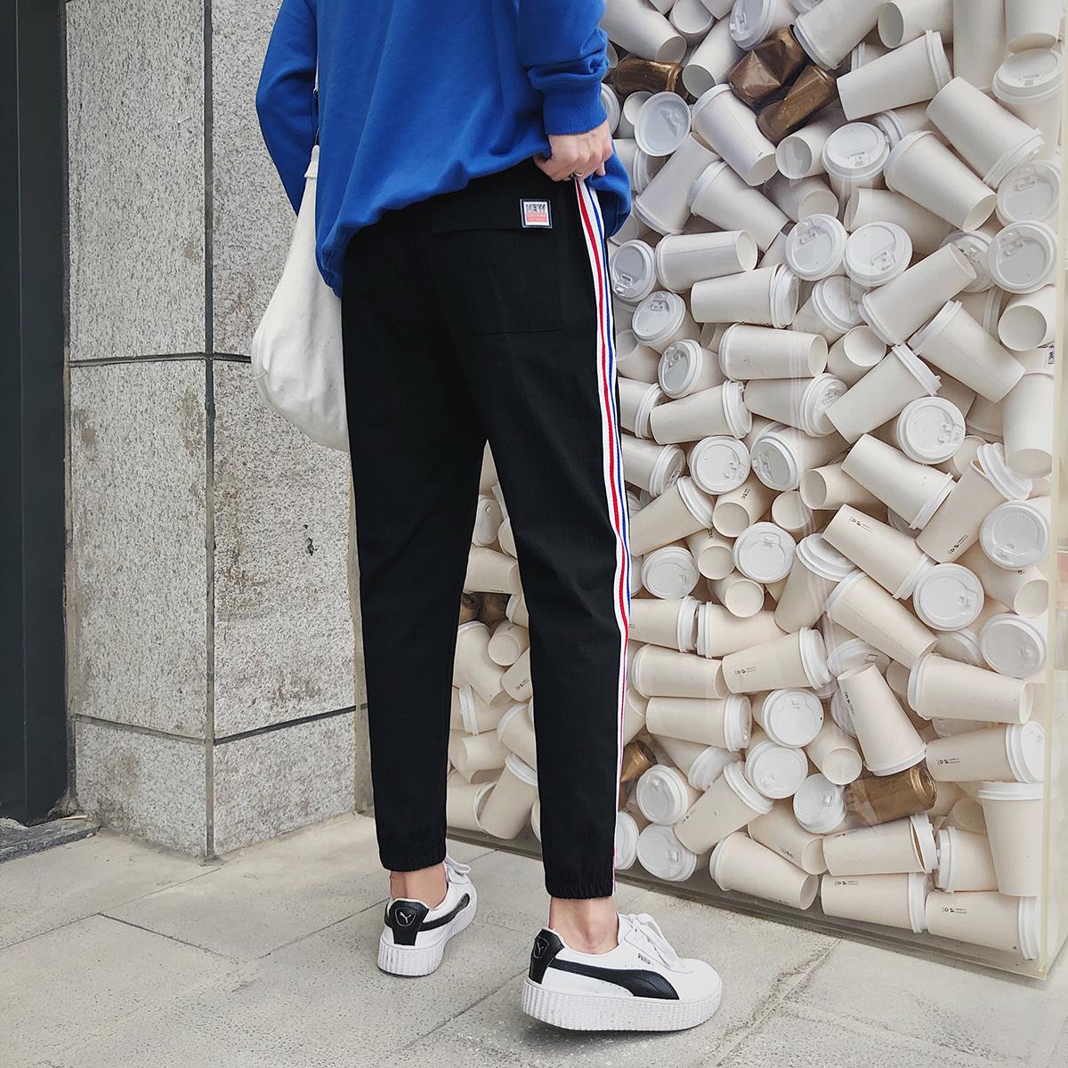 / 運動褲男士韓版潮流休閑褲薄款修身九分褲小腳褲秋季串標褲子國潮