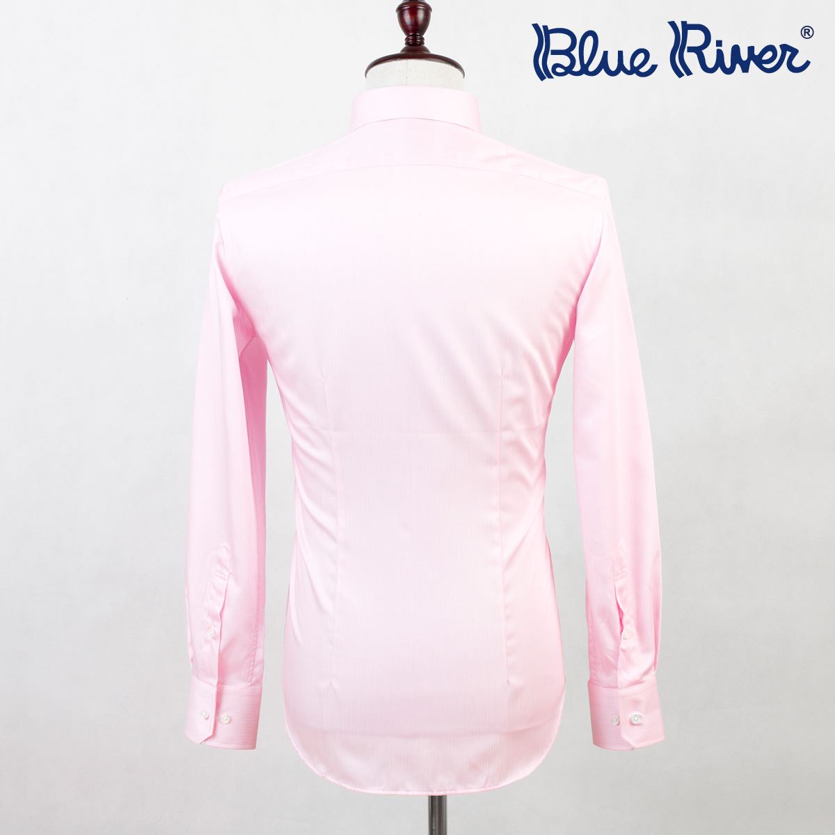 / BLUE RIVER/藍河粉色襯衫男長袖商務休閑英倫條紋襯衣藍河新款