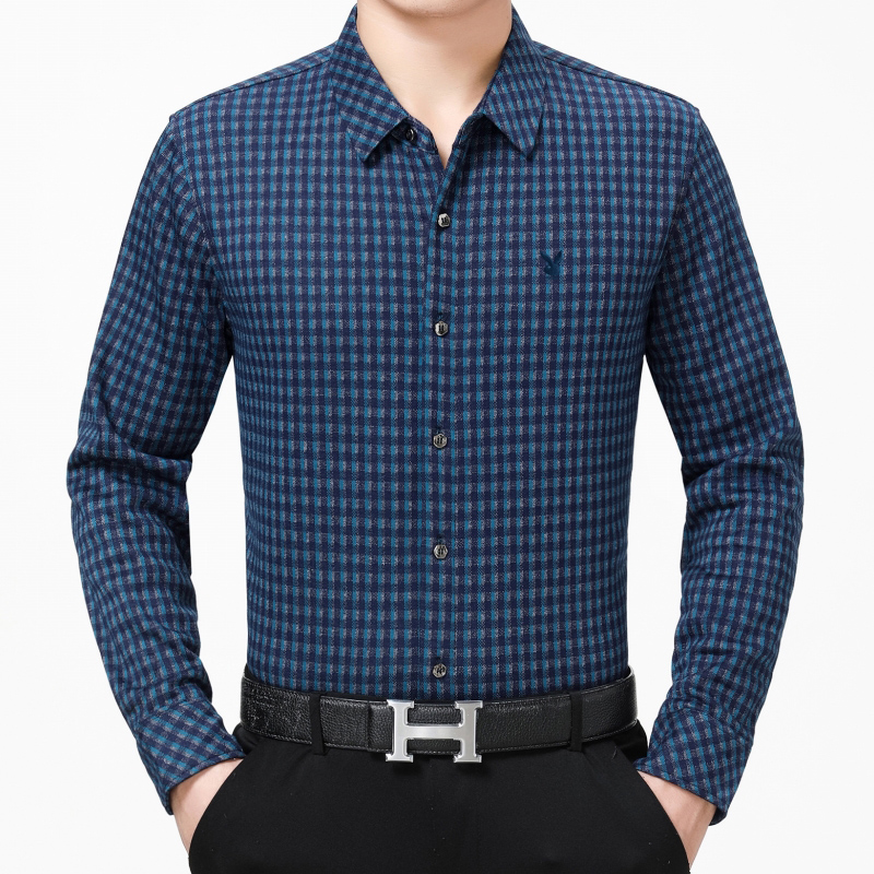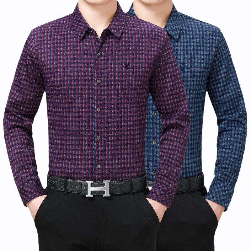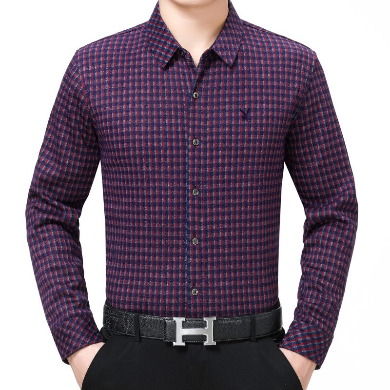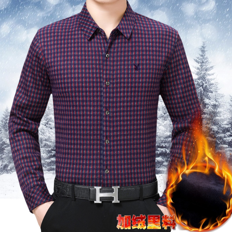 花花公子正品中年男士長袖羊絨保暖襯衫商務男裝格子加絨加厚襯衣