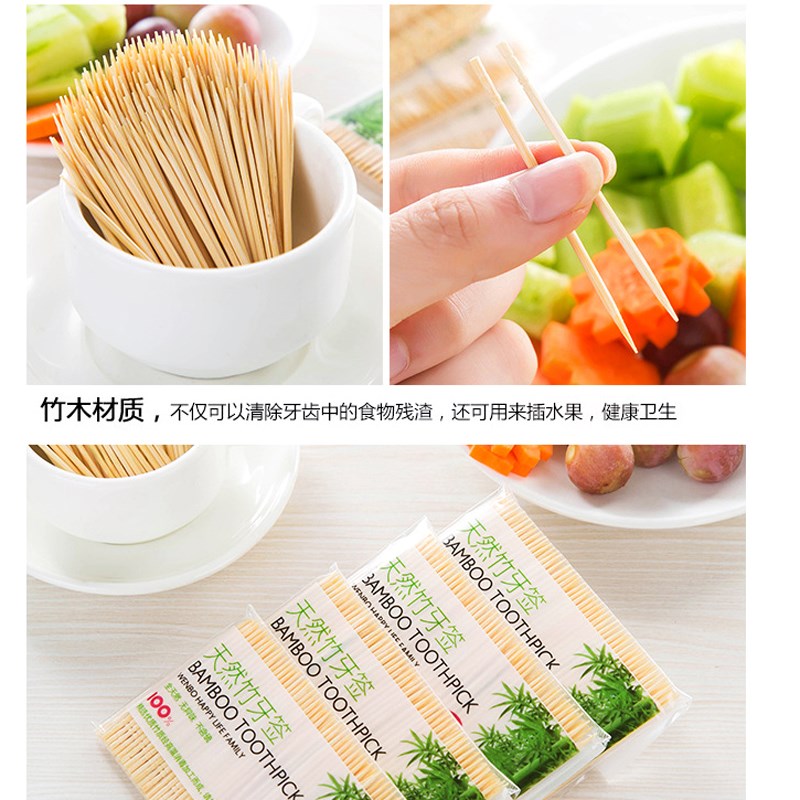 100支家用便攜水果牙簽 一次性竹子單頭餐廳剔牙神器竹制飯店
