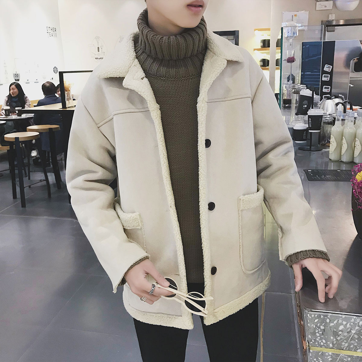 / 文藝男女店港風男士寬松毛呢大衣韓版潮流情侶短款外套秋季男裝