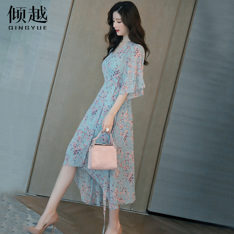 2017夏季新款雪紡連衣裙V領碎花沙灘裙印花性感女長裙吊帶兩件套
