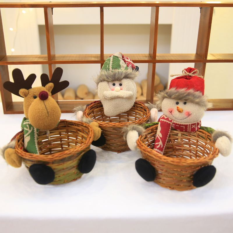 圣誕節裝飾品圣誕糖果竹簍水果籃 圣誕酒吧商場辦公桌擺件糖果籃