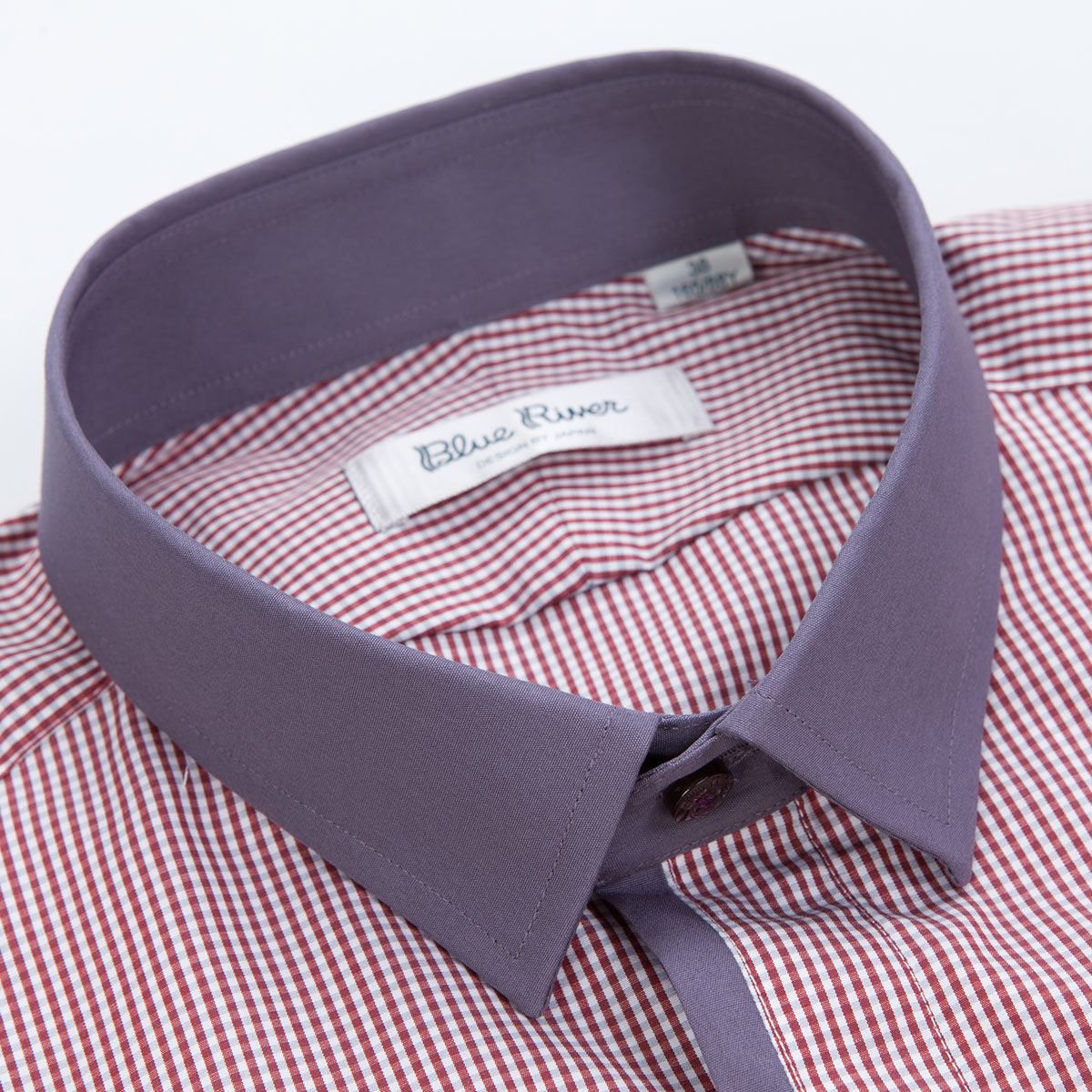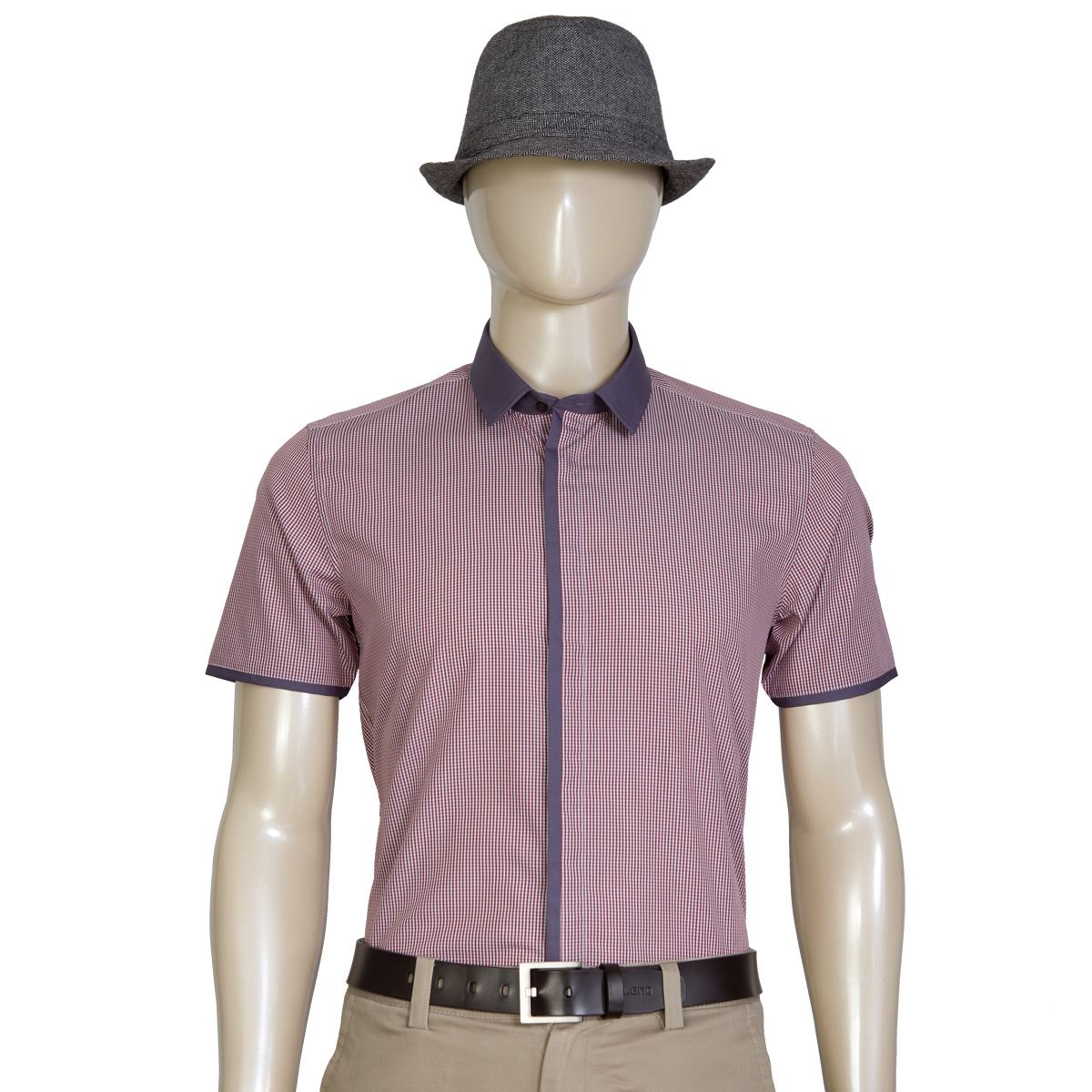 / 藍河男士夏季新品男拼接襯衫短袖時尚格子修身純棉襯衣商務休閑