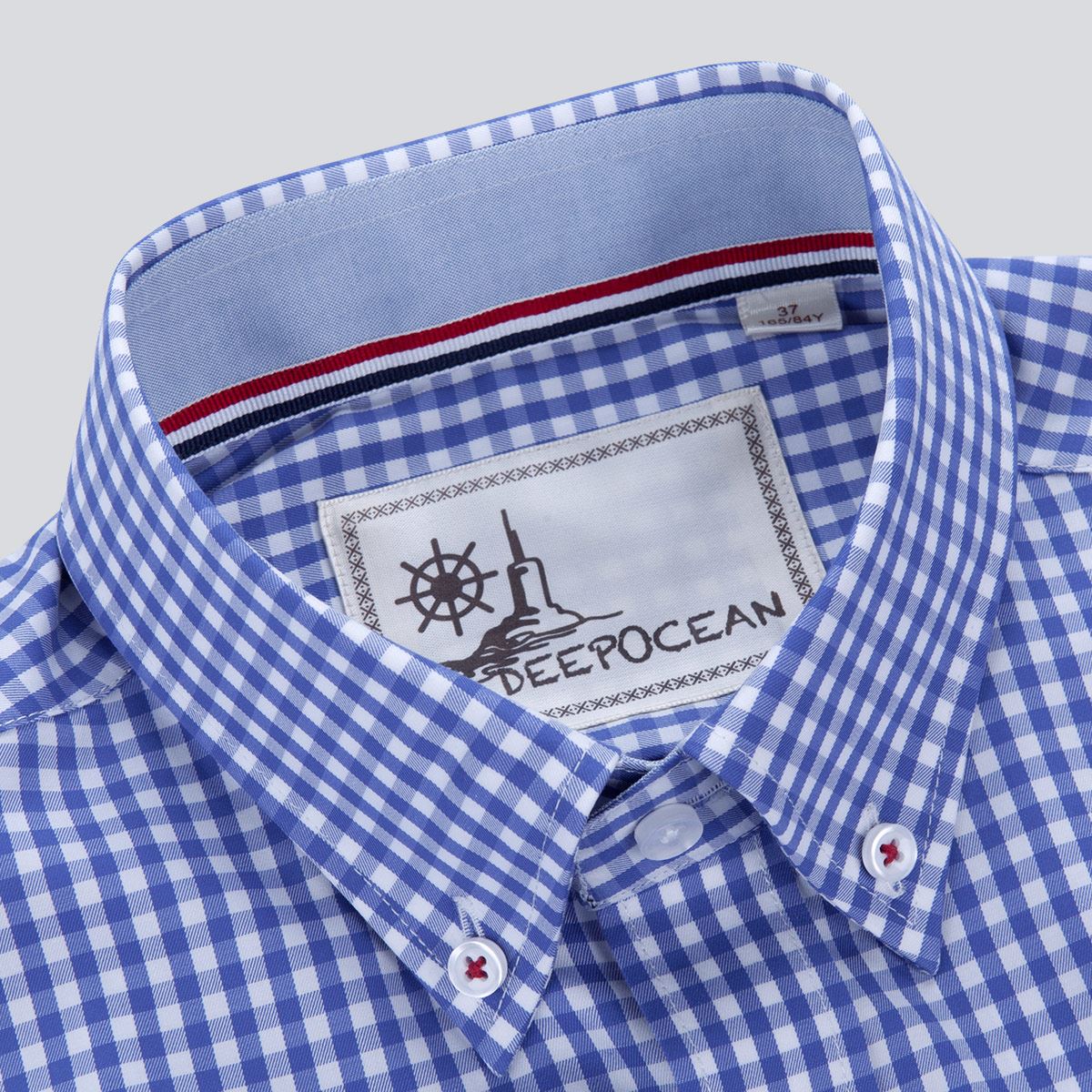 / 秋季藍白小格子男士長袖襯衫高支棉修身免燙韓版正裝釘扣領男襯衣