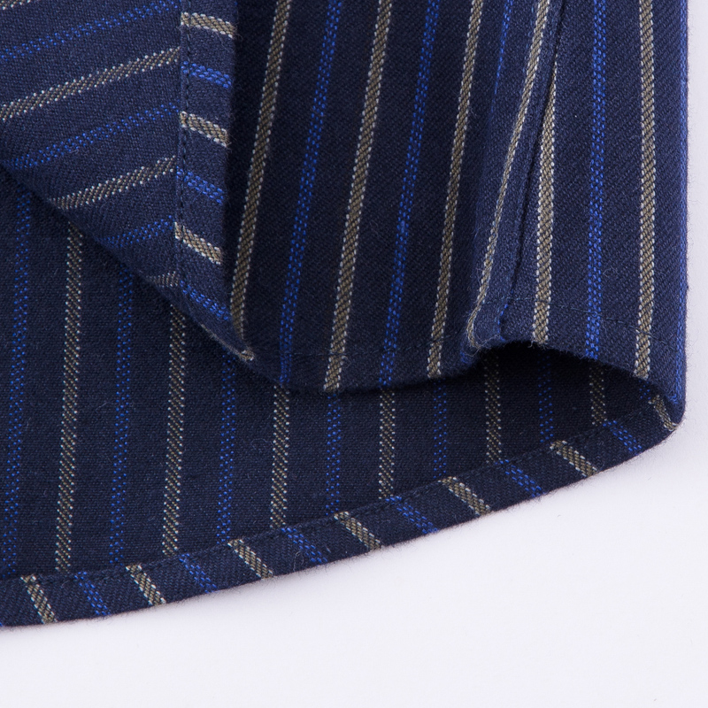 / 中老年純棉條紋襯衫 秋冬磨毛格子男長袖 大碼寬松爸爸裝全棉襯衣