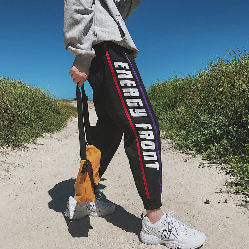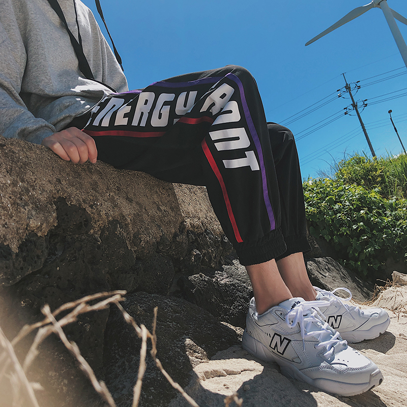/ 秋季精神小伙男士休閑褲韓版潮流字母印花九分褲寬松百搭小腳褲子