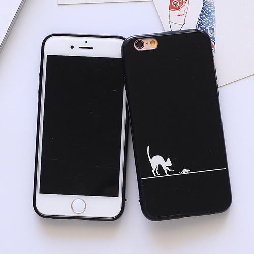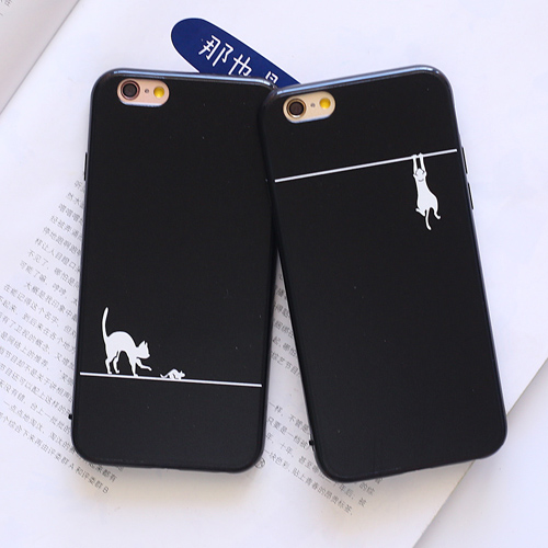 / 蘋果7保護套iphone6手機殼6splus情侶款掛繩創意個性磨砂黑貓日韓