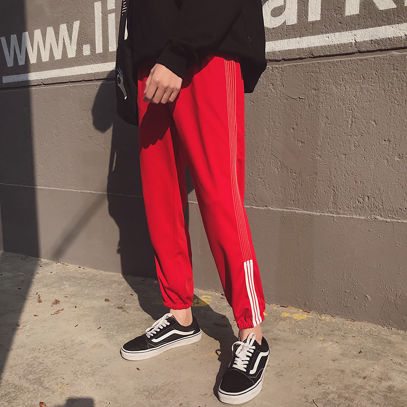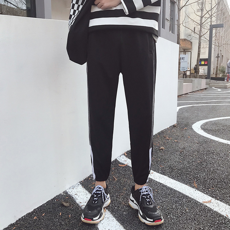 / 秋季ins超火的褲子男休閑褲韓版潮流九分褲原宿港風運動褲小腳褲