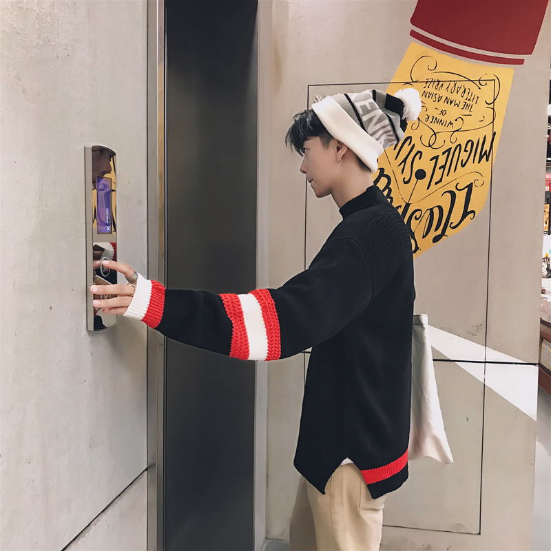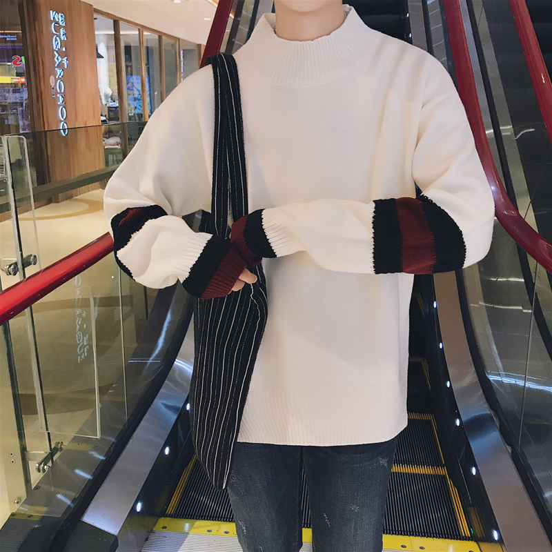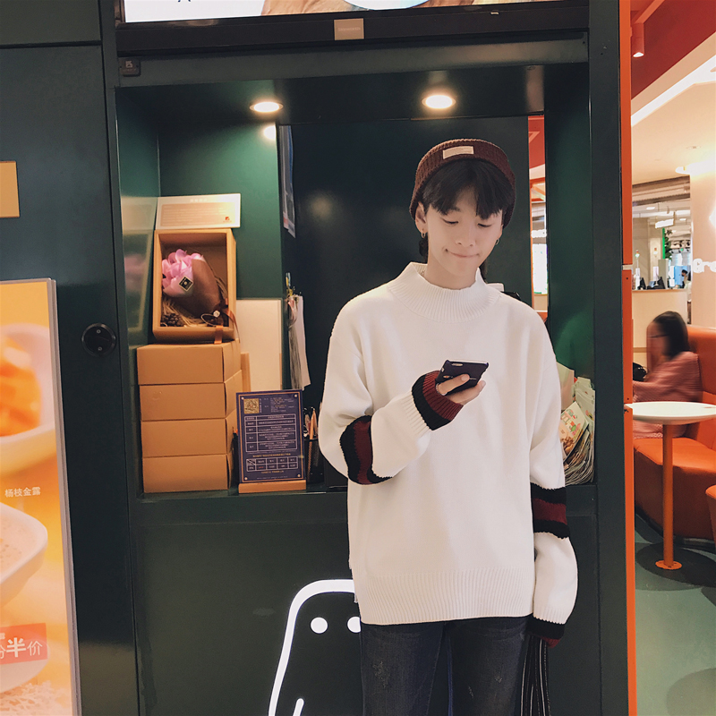 / 文藝男女店半高領寬松毛衣韓版潮流春秋男士針織衫精神小伙情侶裝
