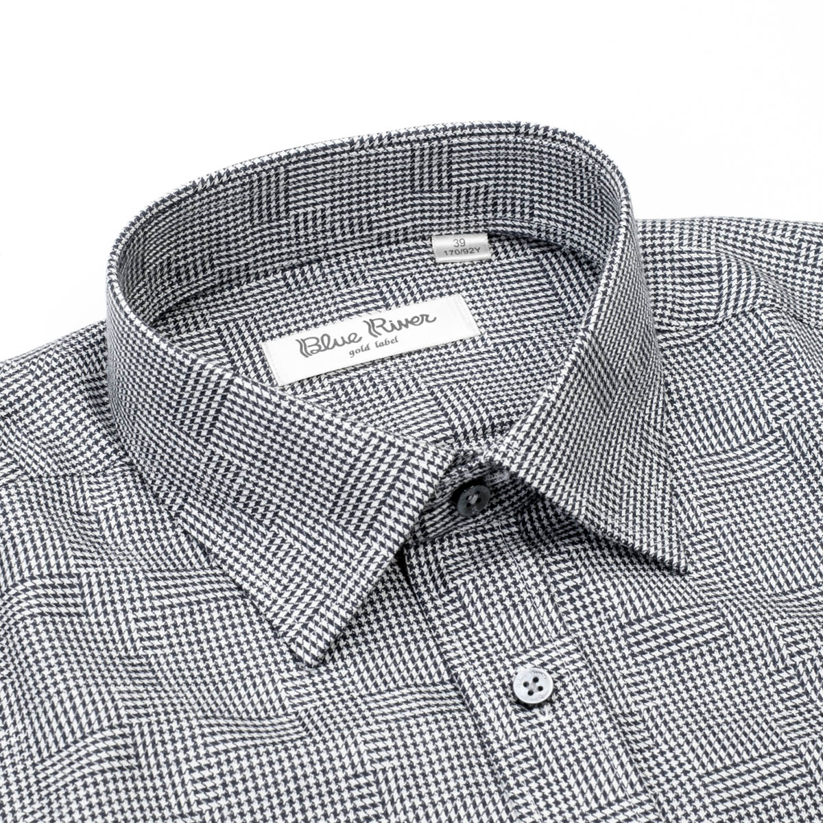 / 藍河秋季新品長袖格子羊毛襯衫男士修身商務休閑保暖時尚青年襯衣